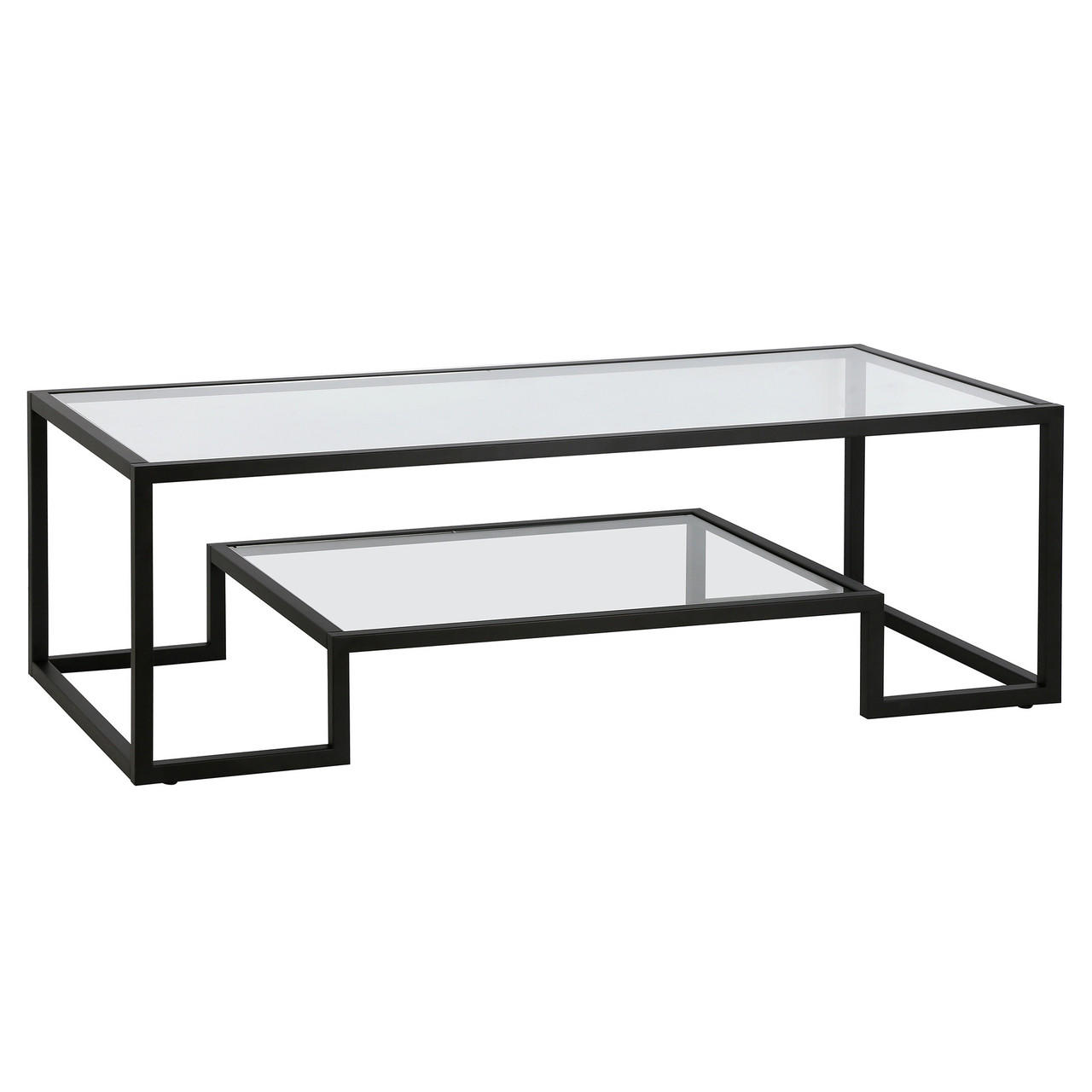 The 54" Black Glass Rectangular Coffee Table with Shelf is the perfect addition to any modern living room. Its sleek black glass top paired with a steel frame creates a contemporary and elegant look that will elevate the style of your space.