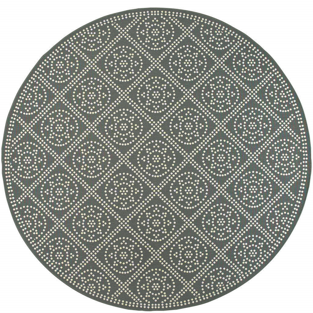 Rehaussez l'ambiance de votre espace intérieur ou extérieur avec notre tapis de forme ronde gris et ivoire, arborant un motif de treillis captivant qui ajoute une touche de sophistication à n'importe quelle pièce. Fabriqué avec une faible hauteur de poil bouclé de 0,07 pouce, ce tapis est conçu pour les zones à fort trafic, offrant durabilité et entretien facile.