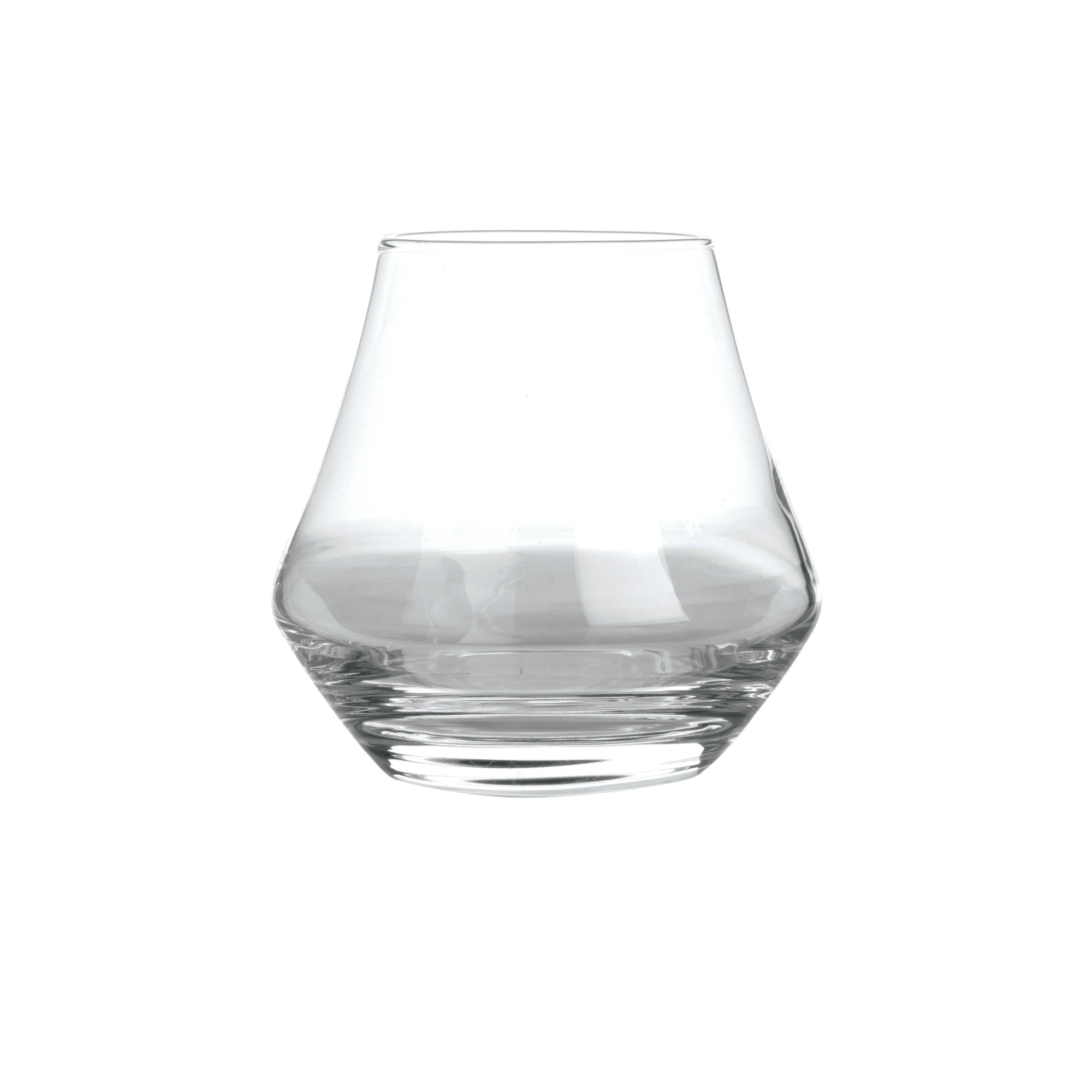 Four 9.8 ounce glasses feature a sleek, wide base perfect for enjoying whiskey. Great wedding, housewarming or host gift.