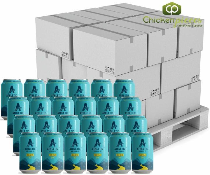 Elevate your moments with Athletic Brewing Run Wild IPA. Choose our bulk 6-can case (50 cases per pallet) and bring the bold, hoppy goodness of this non-alcoholic craft beer to your customers, friends, or personal enjoyment. Order today and let every sip fuel your passion for great taste and good vibes.