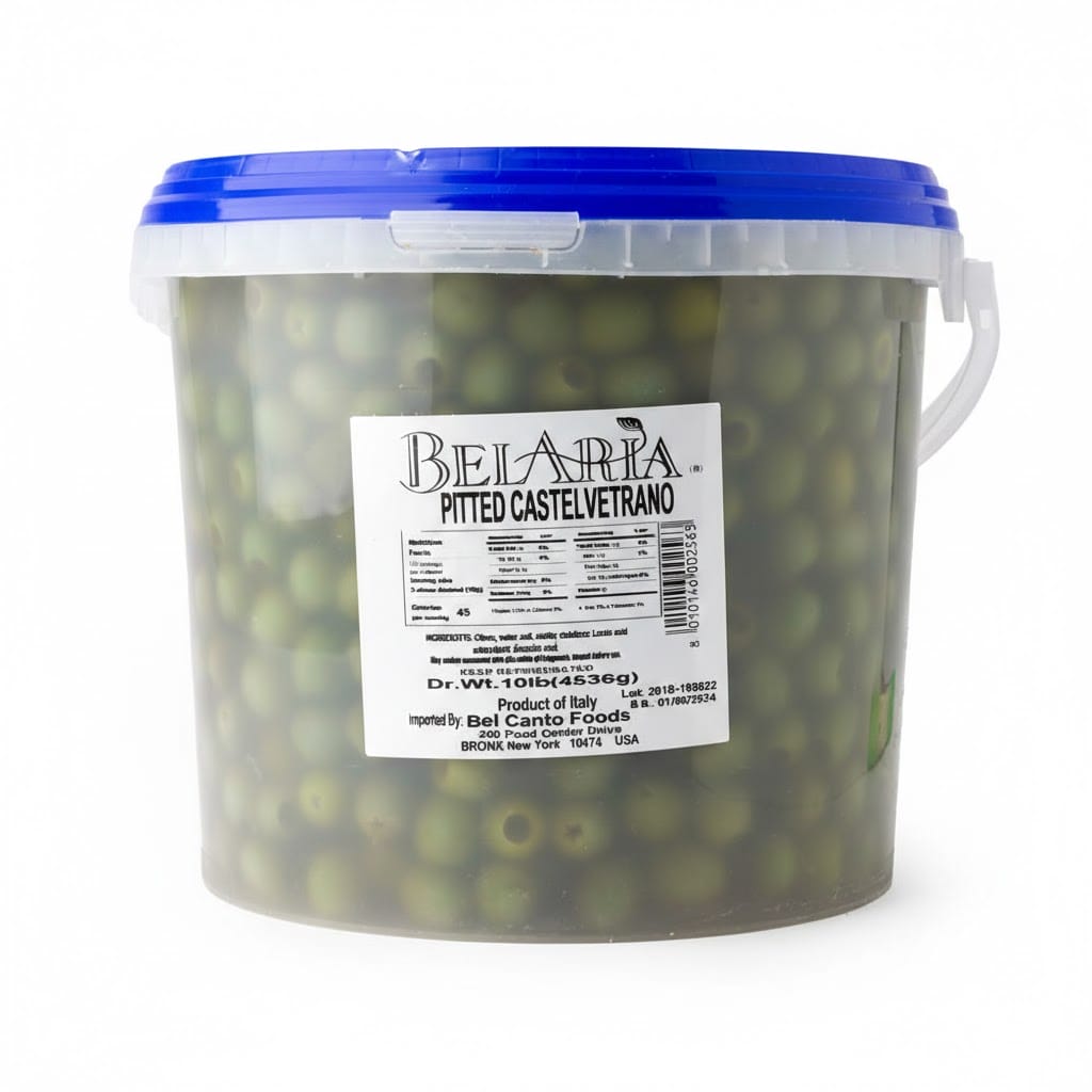 BelAria Pitted Castelvetrano Olives are the world-renowned "Nocellara del Belice" variety from Sicily, known for their stunning emerald green color and mild, buttery flavor. Unlike traditional cured olives that carry a heavy saltiness or vinegar tang, these olives offer a crisp, meaty texture and a clean, fruity finish. Already pitted for convenience, they are ready for immediate use in professional kitchens and high-end catering.