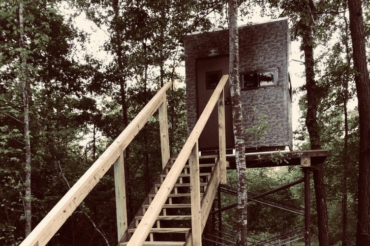 Have you got a winch on your truck or ATV? This is another way to raise a box blind. Get a long piece of rope and build a very big A-frame (at least 16’ tall) out of some small trees or 2x6 Ts (nailed and tied together about 12” from the top). Dig a couple of good-sized holes and drop the legs of your frame in there. The A-frame will need to be upright, but leaning towards the stand. The rope should go over the top of the A-frame and be attached to the top of the stand. Allow a safe distance and winch the box blind up. Don't forget to build (or take) a ladder or steps to get to the door once you raise it.
