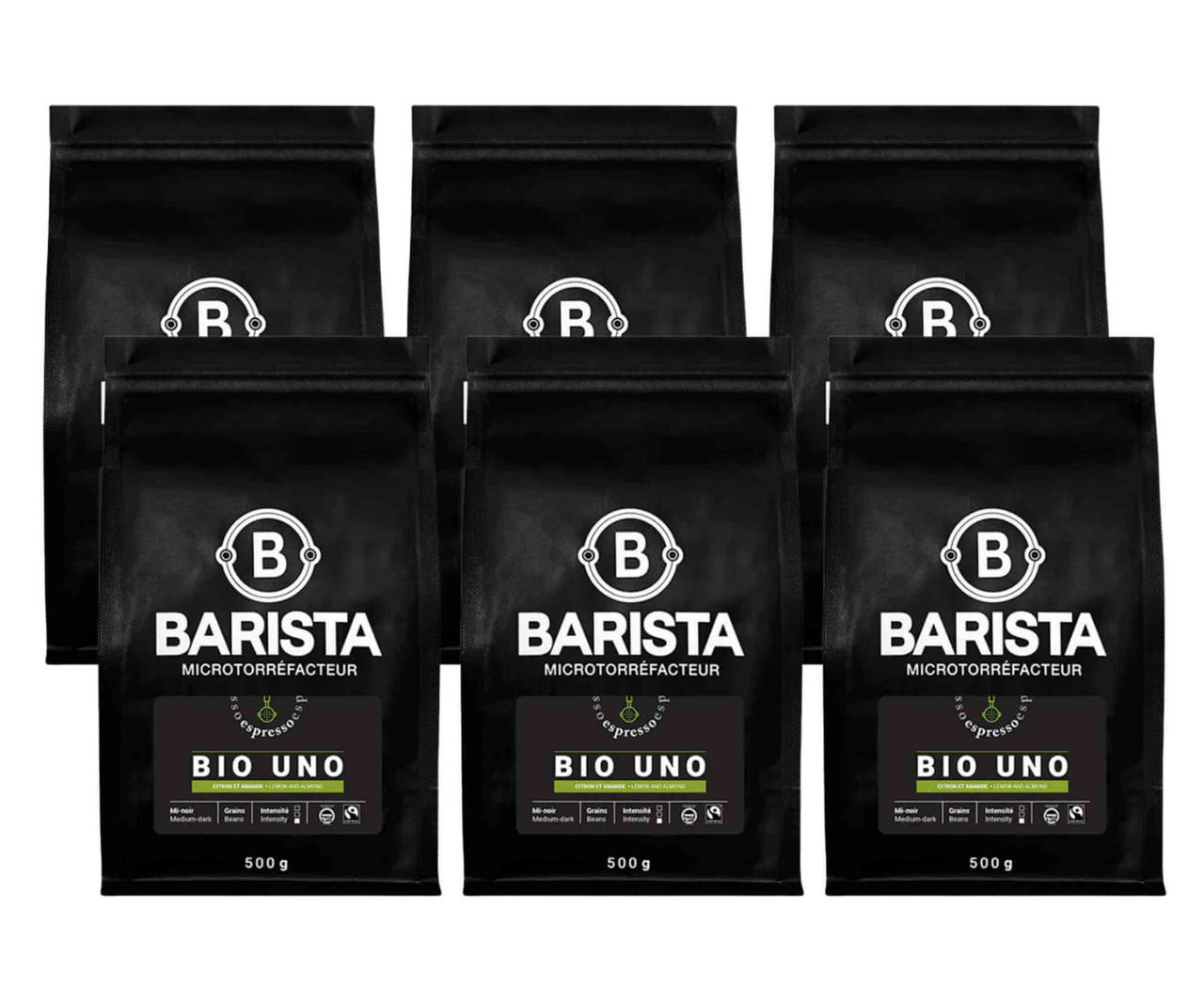 Indulgez-vous dans l'extraordinaire avec les grains de café Café Barista BIO UNO ESPRESSO Medium Blend - un mélange qui associe la richesse de l'Arabica, l'épice de la torréfaction et la provenance éthique des grains équitables