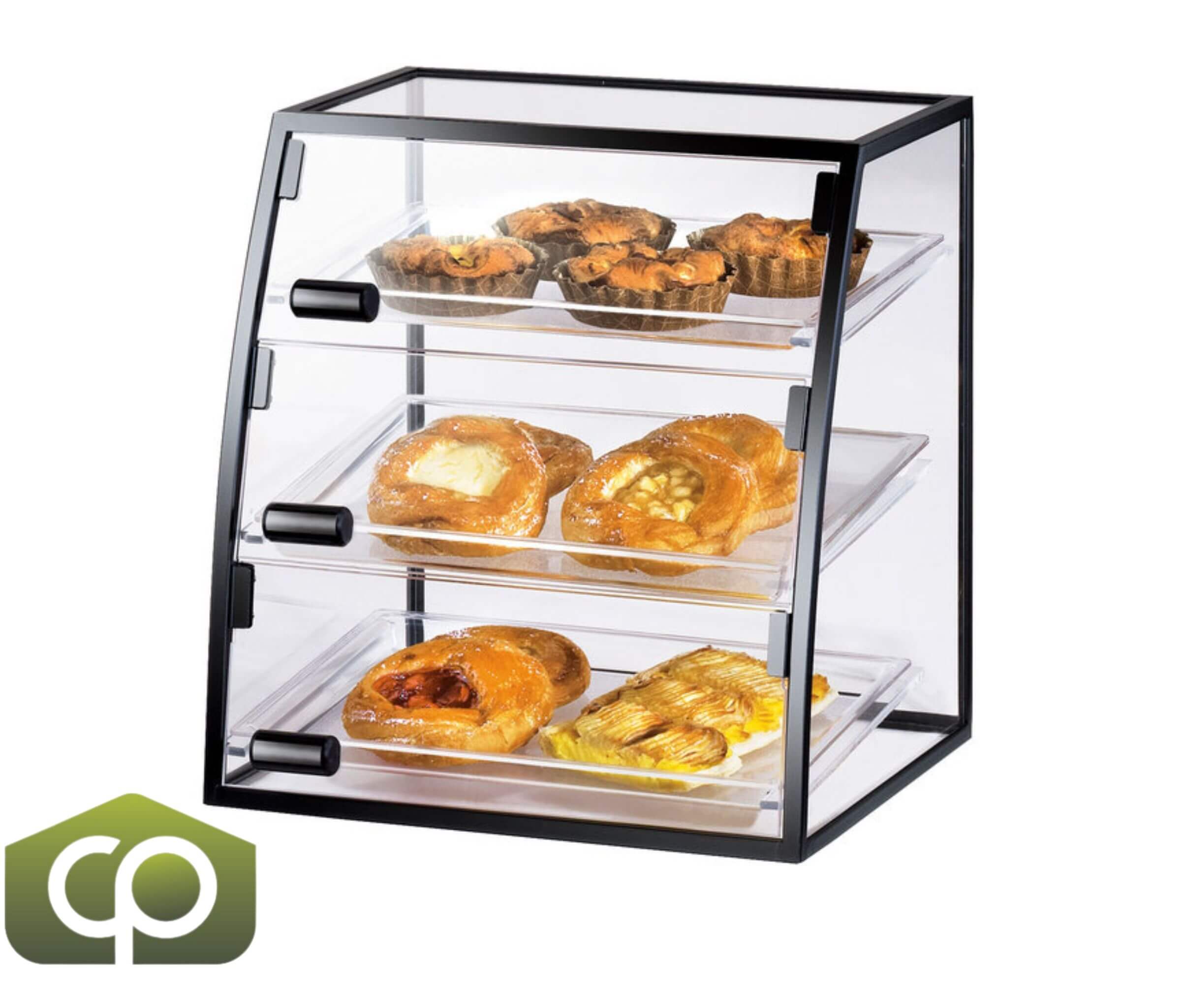 Removable Clear Acrylic Trays: (3) removable clear acrylic trays provide an elegant and organized display for your bakery items.