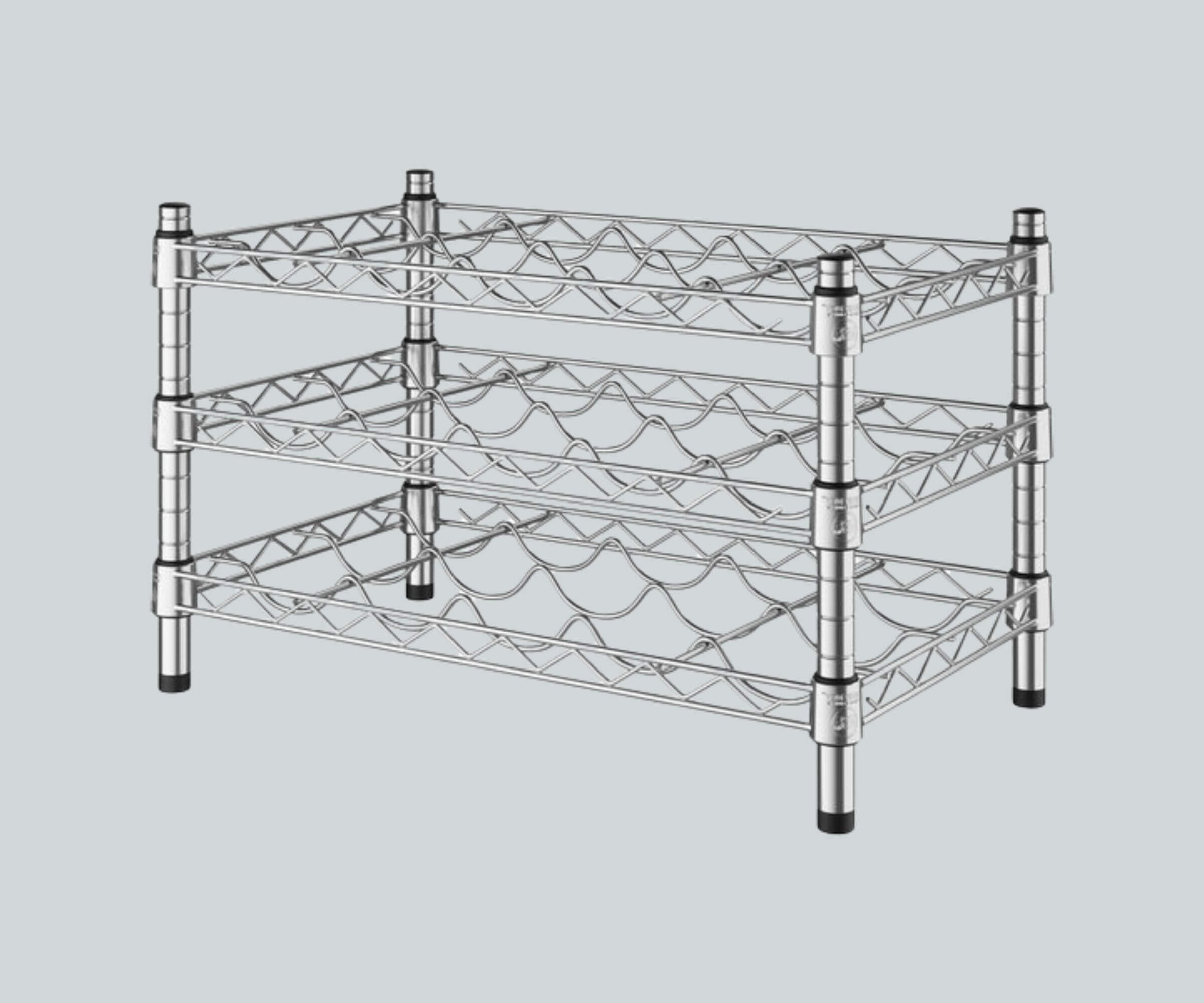 Elevate your wine storage with the CP 3 Shelf Wire Wine Rack, a perfect blend of style and functionality. Designed to hold up to 15 bottles, this wire wine rack is a space-efficient solution that enhances both your decor and wine collection. Crafted with precision, its grooved shelves provide a secure horizontal placement for your 750 mL bottles, ensuring an eye-catching display while aiding in flavor retention.