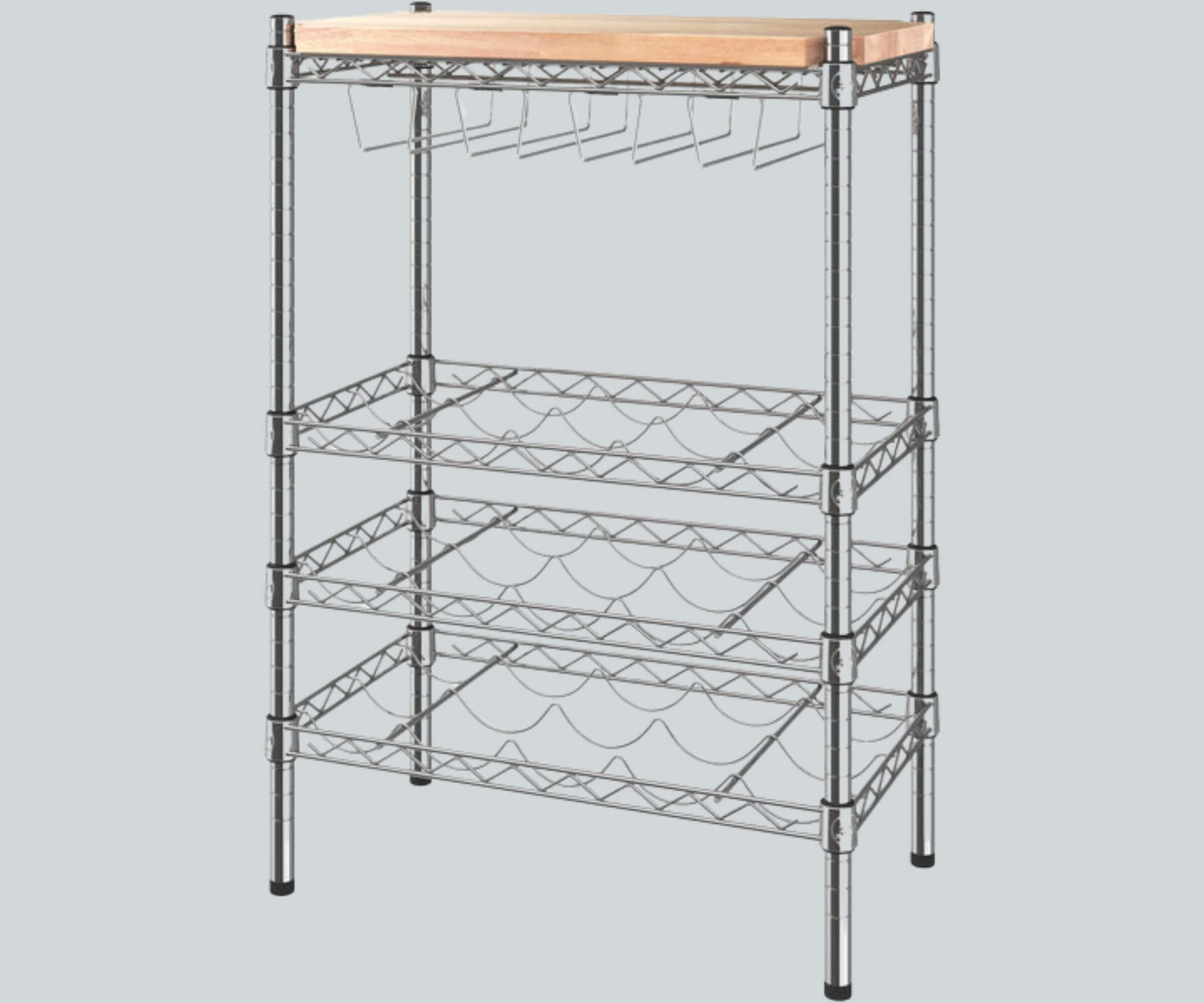 Ample Storage: Store up to 15 wine bottles across (3) wine shelves, maintaining their quality by storing them horizontally to prevent cork dryness and air exposure.