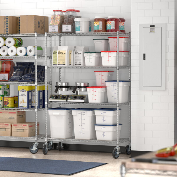 So why settle for less when you can have it all? Upgrade to the Chicken Pieces 24" x 36" x 70" NSF Chrome Mobile Wire Shelving Starter Kit and watch chaos transform into order, one sleek shelf at a time.