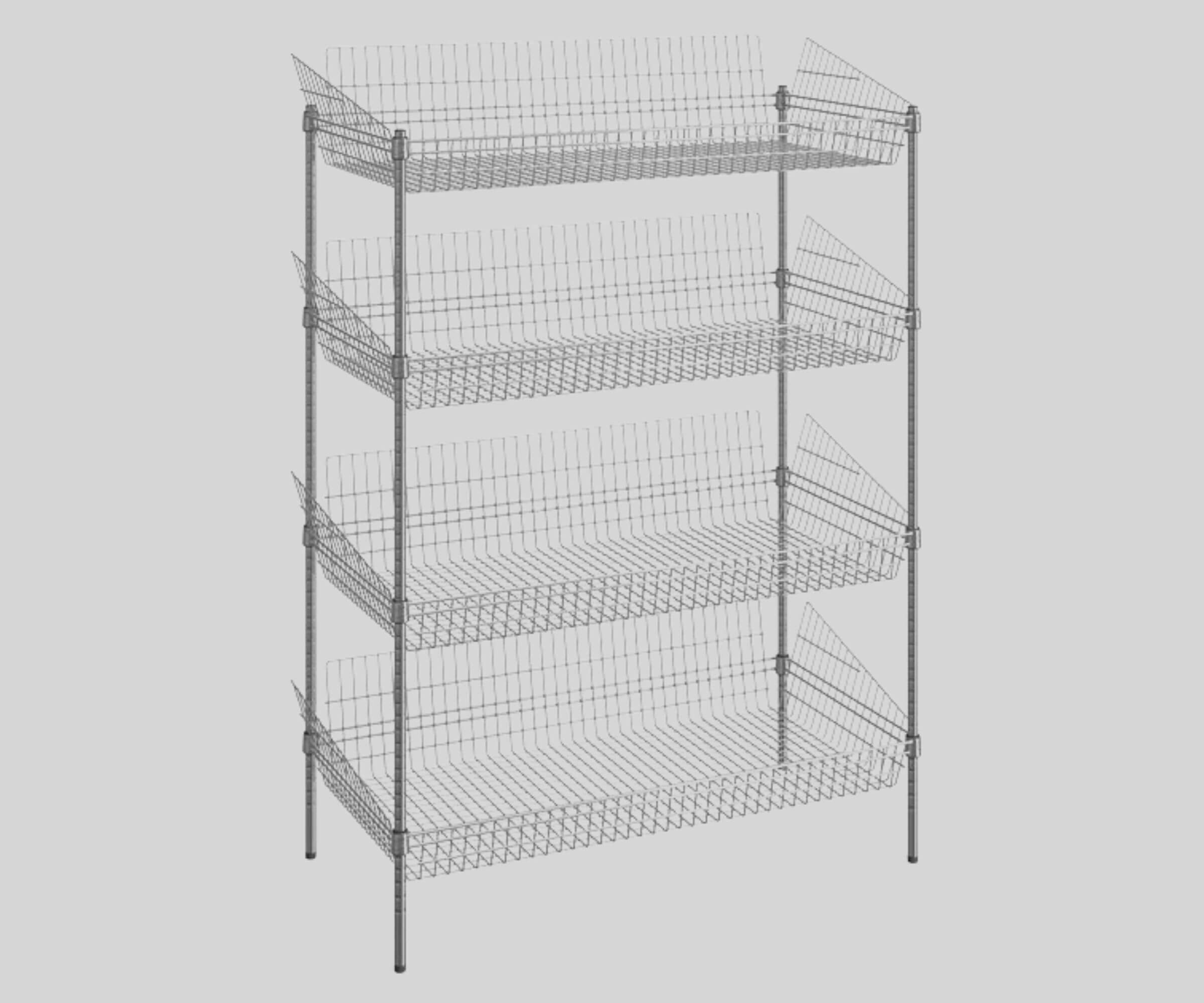 2. High Load Capacity: Each of the (4) 24" x 48" baskets accommodates up to 300 lb. of merchandise.