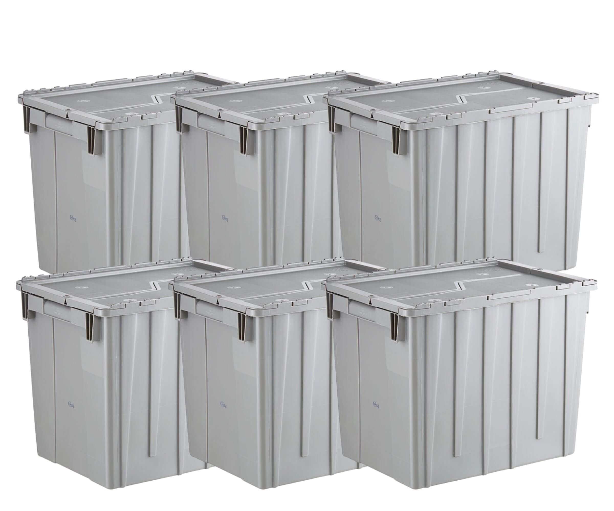 CP Large Stackable Grey Chafer Tote, Storage Box, Attached Lid, 6-Pack, efficient food storage, organized food transport, stackable solution, durable storage solution, attached lid for secure closure, efficient organization bundle, convenient food transport, catering equipment, organized food service, food storage upgrade.