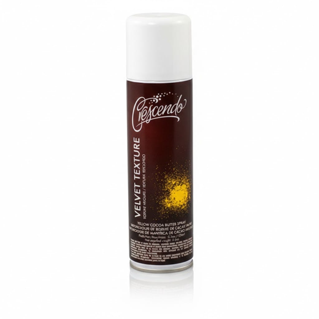 Crescendo Yellow Cocoa Butter Velvet Spray (Velvet T) is a specialized aerosol tool designed to provide a stunning, vibrant "suede" finish to frozen pastries and chocolates. Formulated with premium cocoa butter and high-intensity yellow pigment, this spray creates a micro-crystalline matte texture the moment it touches a frozen surface. It is the industry-standard choice for achieving a modern, velvet look on tropical-flavored entremets and artistic confectionery.