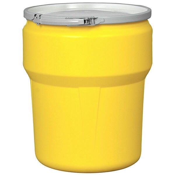 Choose the Eagle Manufacturing 1609M 10 Gallon Yellow Plastic Barrel Drum with Metal Lever-Lock for a durable, reliable, and efficient solution to your hazardous material storage needs. Its superior construction, secure sealing, and versatile design make it the perfect choice for any industrial environment.
