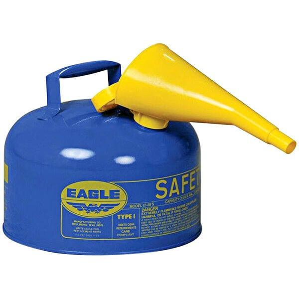 Invest in safety and convenience with the Eagle Manufacturing 2.5 Gallon Type I Blue Steel Kerosene Safety Can with Flame Arrester and Funnel UI25FSB. Click 'Add to Cart' now to secure a dependable and compliant solution for your kerosene storage and handling needs!