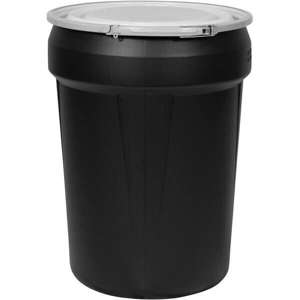 Invest in the Eagle Manufacturing 1601MBLK 30 Gallon Black Plastic Barrel Drum with Metal Lever-Lock for durable, secure, and efficient storage of your hazardous materials. Click 'Add to Cart' now to enhance your storage capabilities with this reliable and robust barrel drum!