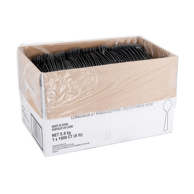 Gordon Choice GFS Black Polystyrene Plastic Soup Spoons, Medium Weight, Cutlery | 1000UN/Unit, 1 Unit/Case