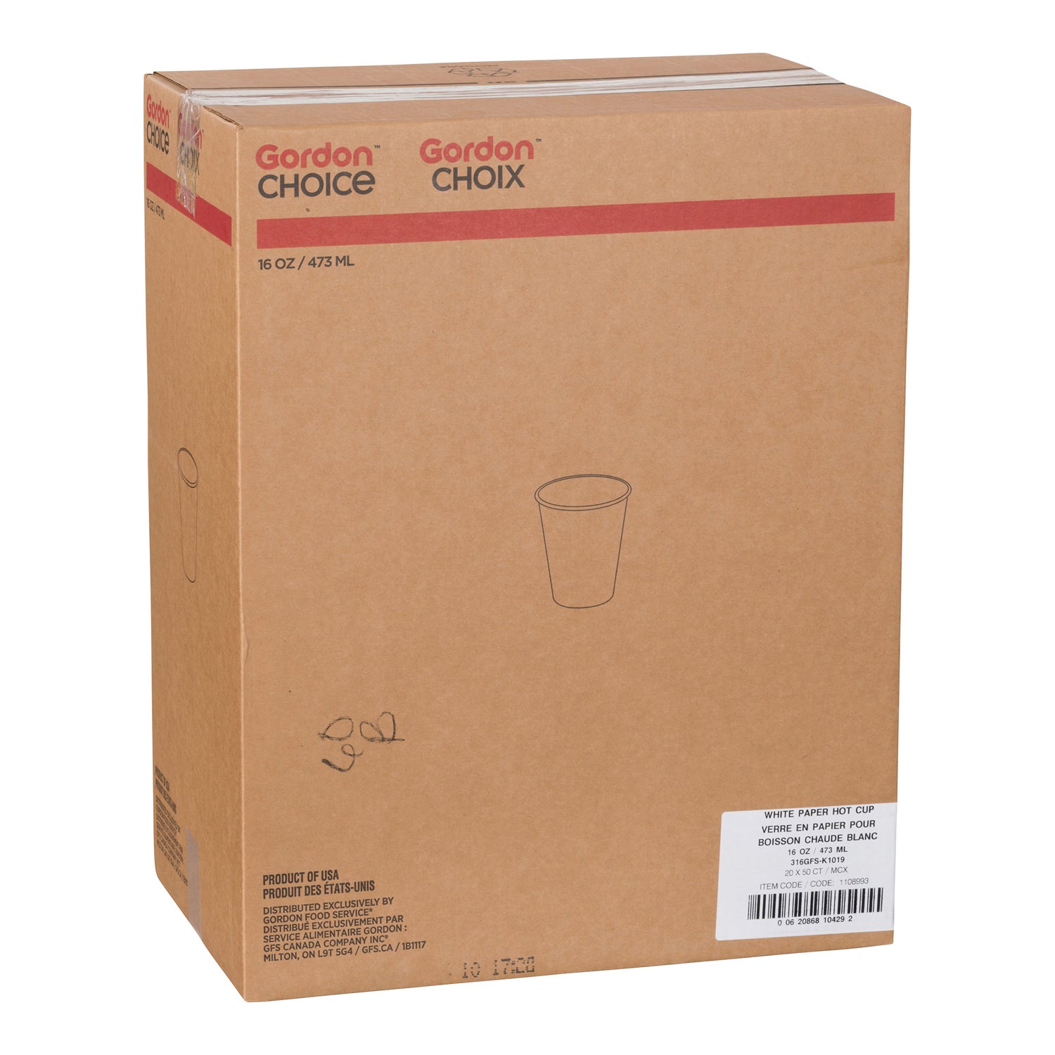 This is a white, 16 ounce, single-sided poly hot cup. Packaging & Storage