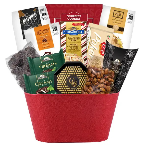 Elevate your holiday gifting with our spectacular Holiday Celebration Gift Basket. This carefully curated assortment features premium treats like Charlie & Sam's Milk Chocolate Truffles, Ghirardelli Peppermint Bark, and buttery Vanilla Shortbread. Perfect for sharing with family, surprising colleagues, or as a festive centerpiece for your patio gatherings, this basket is the ultimate expression of seasonal joy. It's more than a gift; it's an experience. Shop this deluxe holiday basket now and spread the cheer!