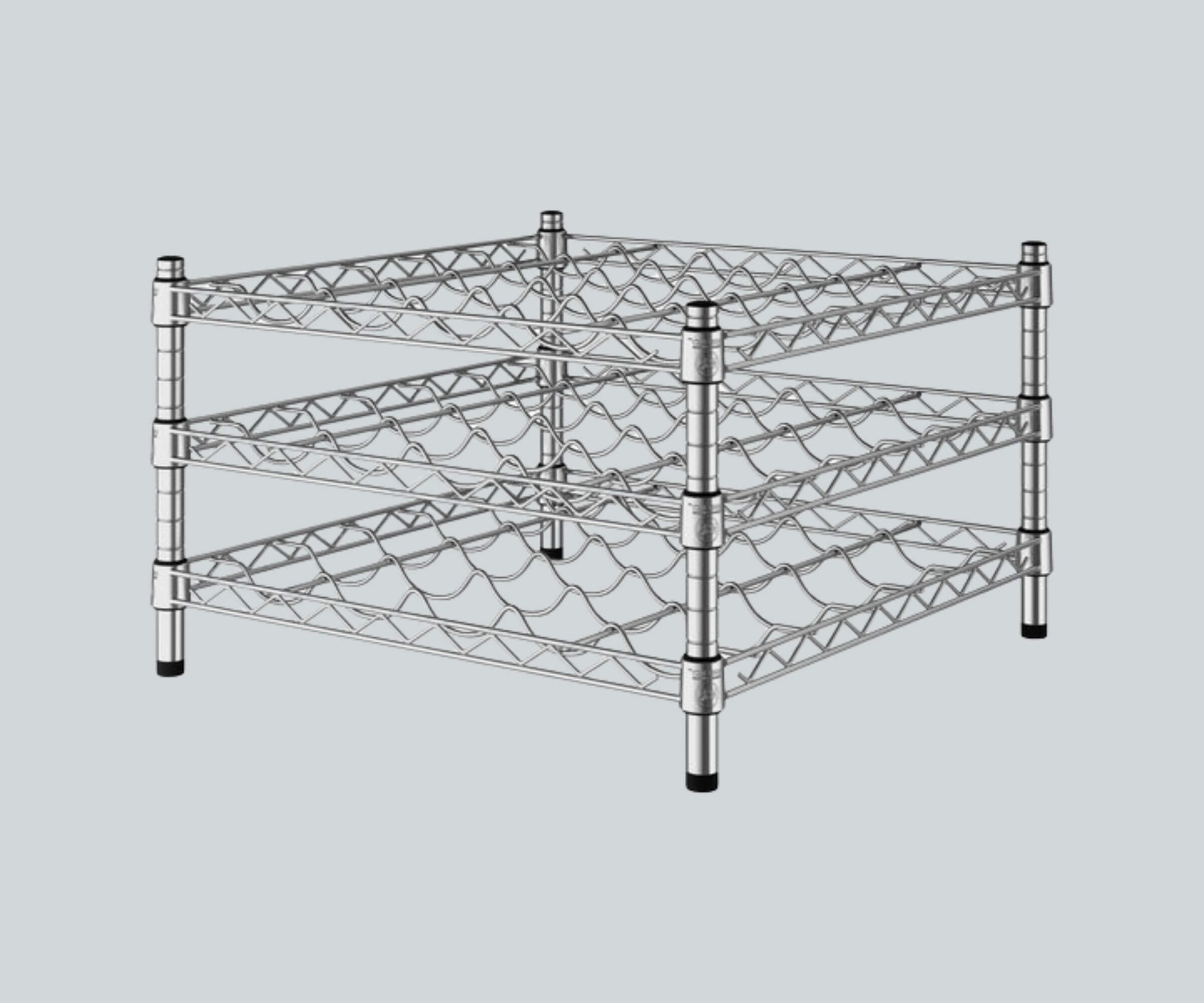 Sleek Chrome Finish: The chrome finish adds a touch of elegance to your wine storage setup, making it ideal for storage use. It's particularly well-suited for dry environments.