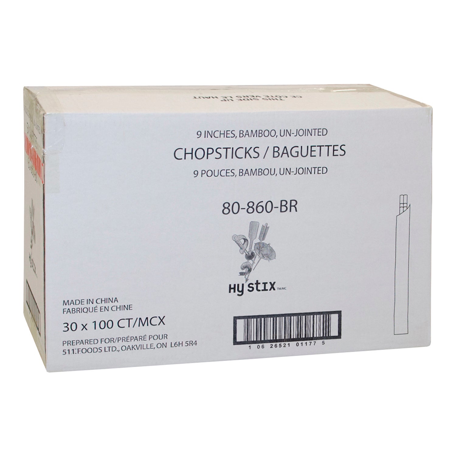 Made of bamboo, these chopsticks are eco-friendly with a bright sleeve, unjointed, 9". Packaging & Storage