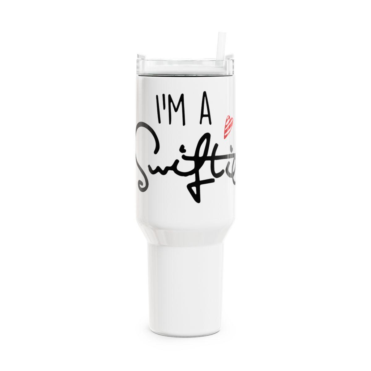 Order your "I'm A SWIFTIE" 40OZ Stanley Style Tumbler today and enjoy your favorite drinks in style while proudly showing off your Swiftie pride!