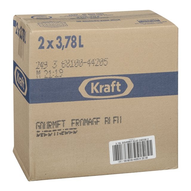 Packaged in a practical size, each unit of Kraft Chunky Blue Cheese Dressing contains 3.78L, with 2 units per case. The total weight of each case is 7.56 kgs. The compact dimensions of 11.00 x 11.00 x 6.00 inches / 27.94 x 27.94 x 15.24 cm make it convenient to store in your kitchen or pantry.