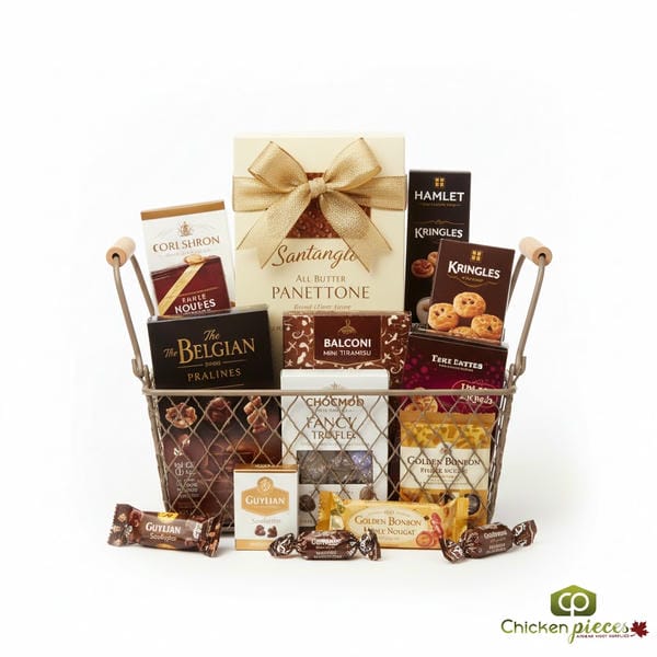 Discover the ultimate gourmet gift that keeps on giving! This stunning Metal Picnic Basket Gift Set is filled to the brim with premium treats from Italy and Belgium, including all-butter Panettone, decadent chocolates, and delicate puff pastries. The versatile taupe metal basket with wooden swing handles is perfect for picnics, market runs, or stylish home storage. It’s the perfect, memorable gift for foodies and outdoor enthusiasts alike. Shop this unique international snack basket now!