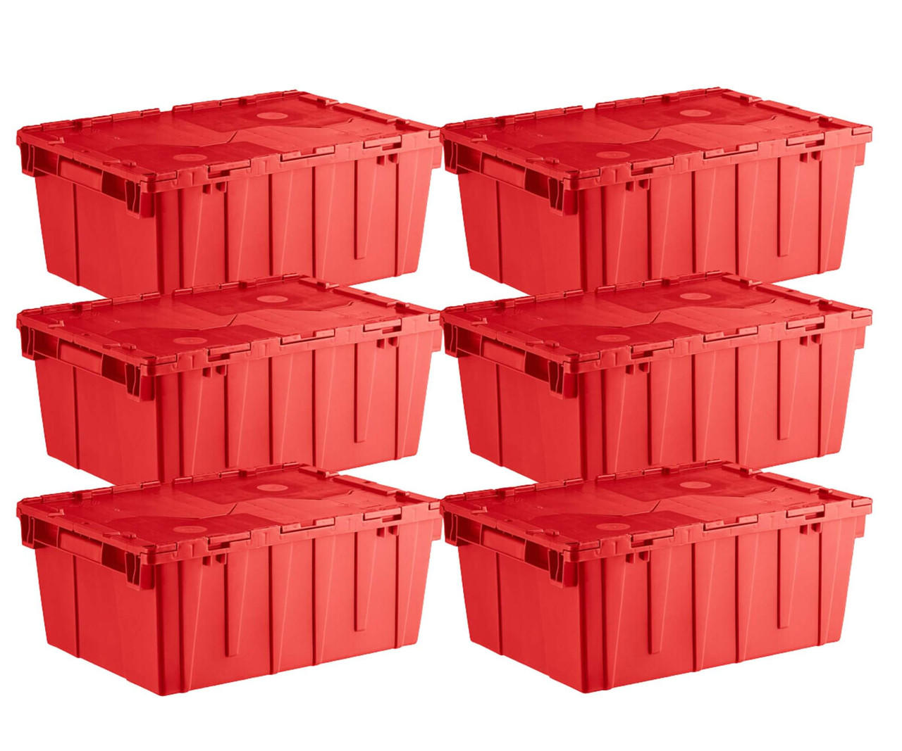 Orbis Stack-N-Nest Flipak Red Tote Box, Hinged Lockable Lid, Pin, 6-Pack, secure storage solution, stackable design, nestable storage, enhanced security, vibrant red color, efficient organization, convenient storage, distinctive equipment.