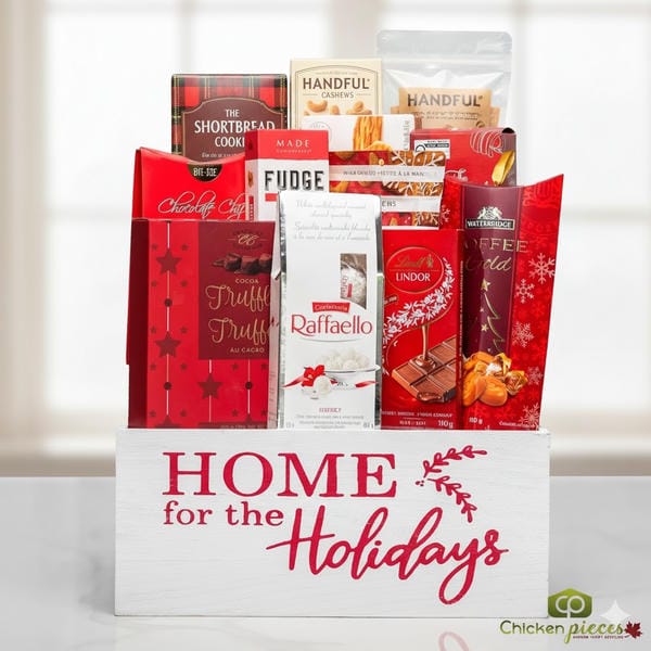 Make your holidays unforgettable with Peter & Paul's Home For The Holidays Gift Basket, featuring a versatile reusable wooden crate filled with premium sweet treats. This charming set includes buttery shortbread cookies, decadent chocolate truffles, creamy Lindor bars, crunchy cashews, rich fudge, and elegant Raffaello Ferrero confections. The sturdy 13" wooden crate becomes a decorative storage piece or holiday decor item long after the sweets are enjoyed. Perfect for family gatherings, hostess gifts, or creating cozy holiday moments. Bring the warmth home this season—order this delightful holiday package today!