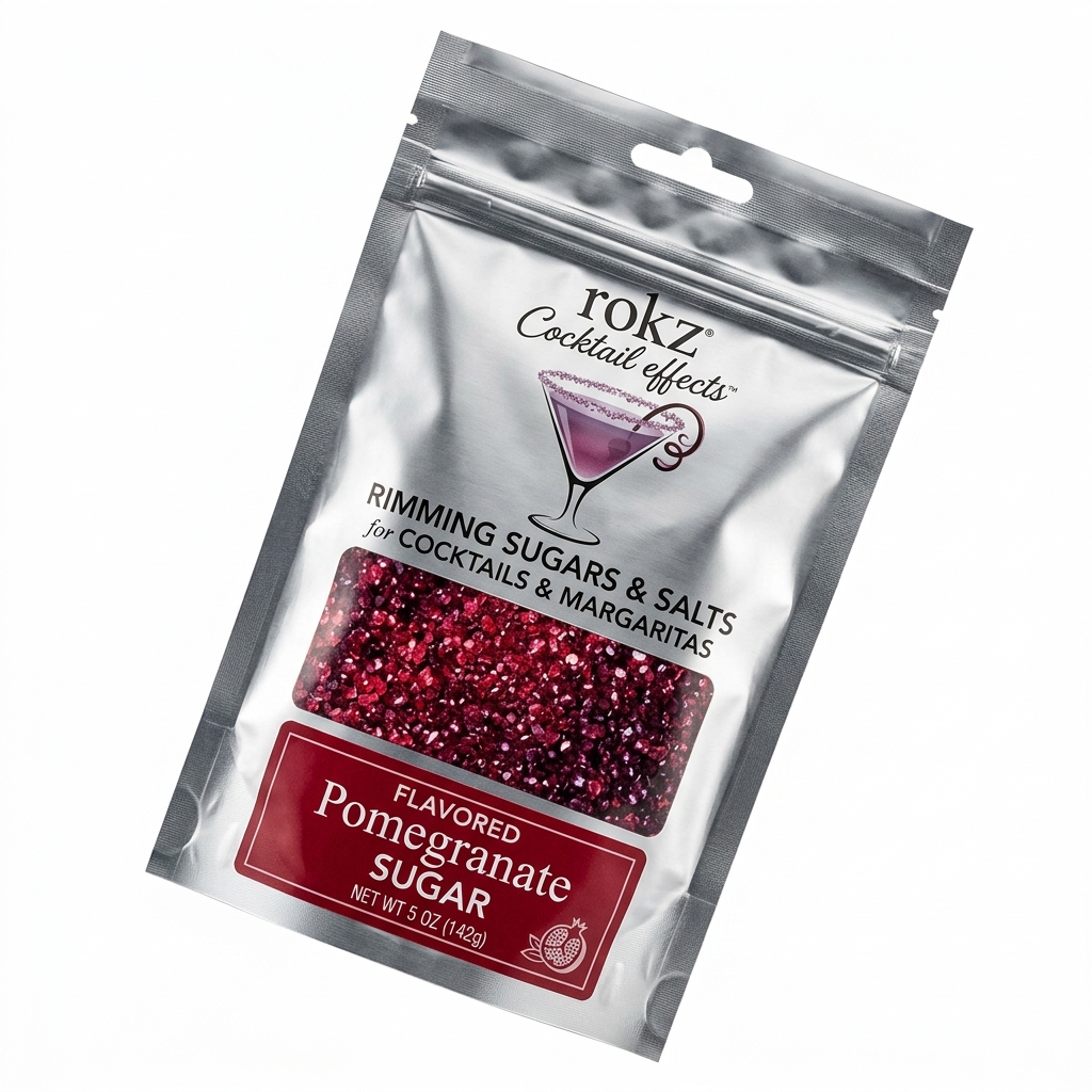 Rokz Pomegranate sugar is infused with natural flavors and professional-grade crystals, whereas generic options often use simple dyes and standard table sugar. Rokz provides a more nuanced fruit taste and a superior sparkle that does not bleed into the drink, ensuring a higher quality presentation.