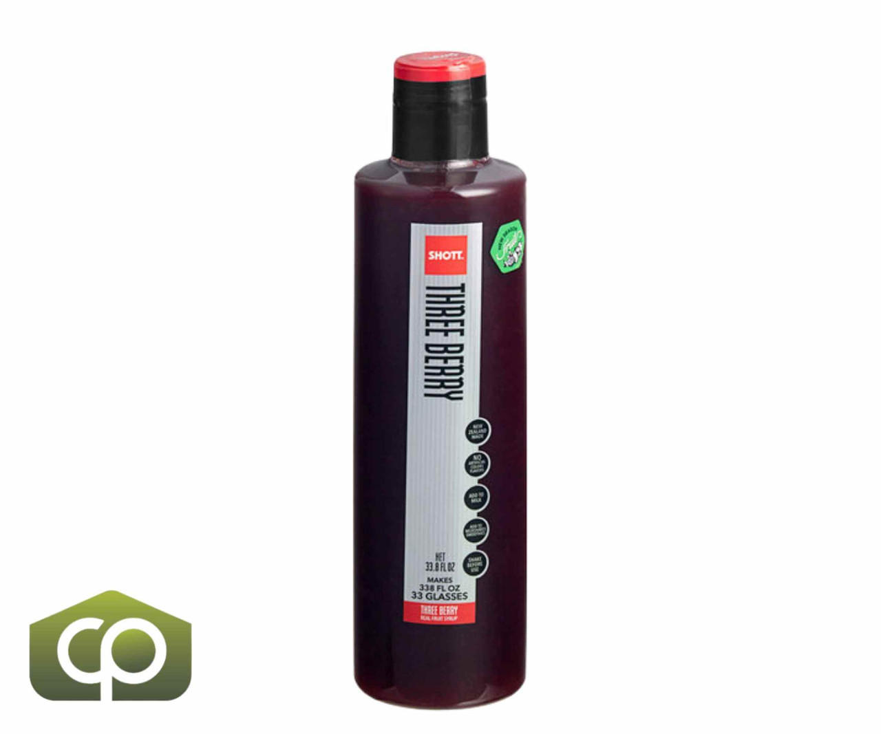 SHOTT Three Berry Real Fruit Flavoring Syrup - 1 Liter Bottle for Bursting Berry