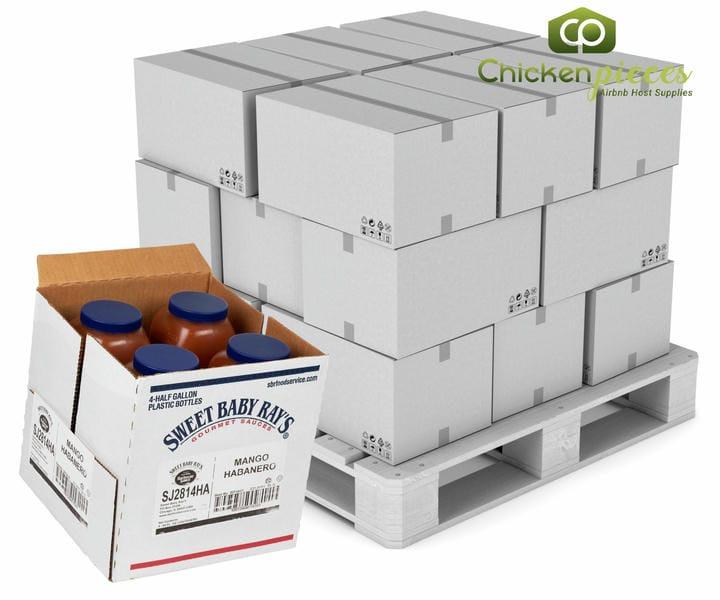 A full pallet contains 48 cases, which equals 192 bottles of Mango Habanero Sauce—perfect for distributors, large-scale kitchens, and wholesale supply.