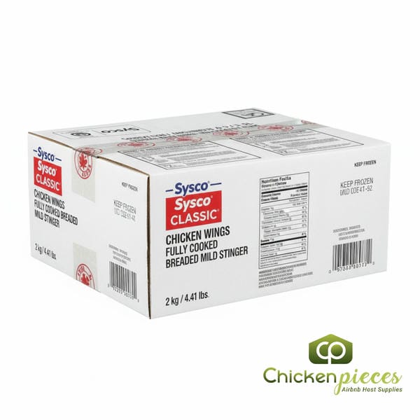 The Sysco Classic Chicken Wing Fully Cooked Breaded Mild Stinger 2kg/4.41Lbs (2/Case) delivers a convenient, crowd-pleasing solution for restaurants, catering operations, and event planners. These wings are fully cooked and breaded, allowing chefs and operators to simply heat and serve, saving valuable prep time without sacrificing flavor or texture.