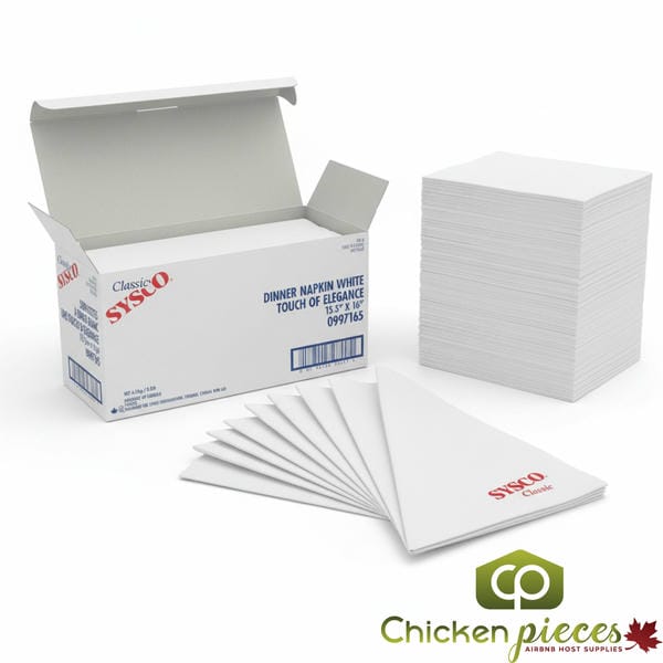 Packaged in cases of 5 packs of 100 napkins (500 total), these napkins ensure organized, easy access and reliable supply for high-volume foodservice operations. Soft, durable, and visually appealing, Sysco Classic White Dinner Napkins combine functionality with elegance, making them a practical yet sophisticated choice for any dining environment.