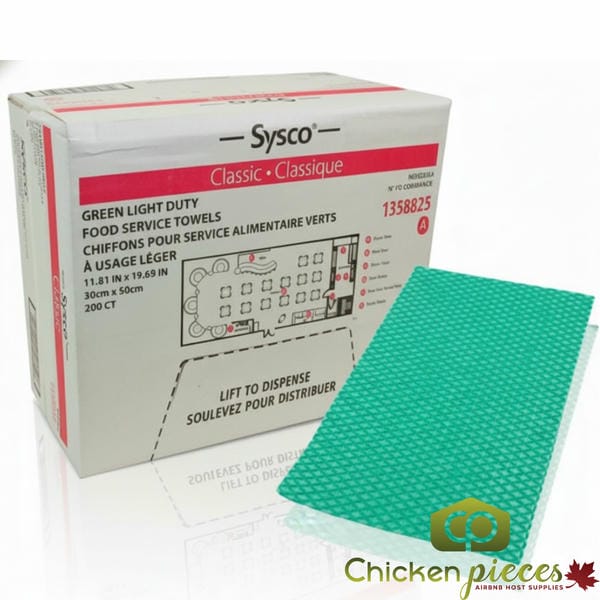 The Sysco Classic Towel Wiper Green – Light Duty, High Absorbency (200/Case) delivers a reliable cleaning solution designed for foodservice professionals. Crafted from a cloth-like, highly absorbent material, these disposable towels provide superior performance for wiping down kitchen counters, dining tables, prep stations, and bar surfaces. With a generous size of 19.7 inches by 11.81 inches, each towel ensures efficient coverage for quick and hygienic cleaning.