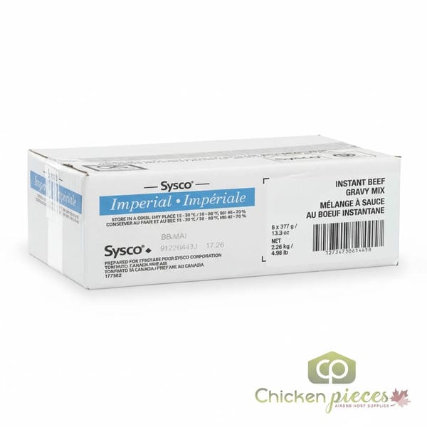 Bring classic comfort flavors to your menu with Sysco Imperial Mix Gravy Beef Instant 377g / 0.8 lbs (6/Case). Proudly made in Canada, this high-quality instant mix produces a smooth, lump-free gravy with authentic beef flavor in just minutes. Designed for foodservice professionals, it provides consistency, convenience, and versatility across a wide range of applications.