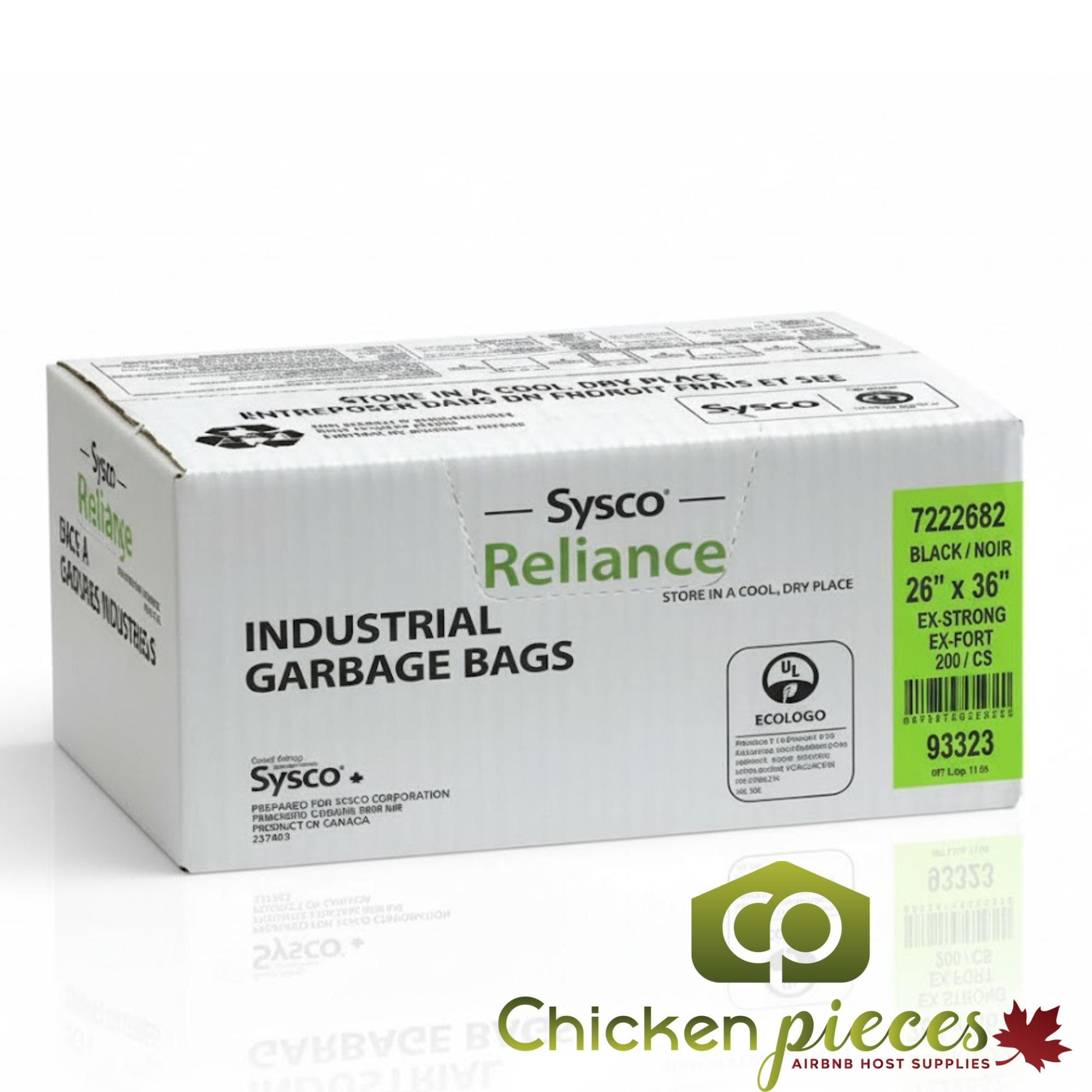 A5: Sysco Reliance Extra Strong Black Garbage Bags are made in Canada under strict quality standards.