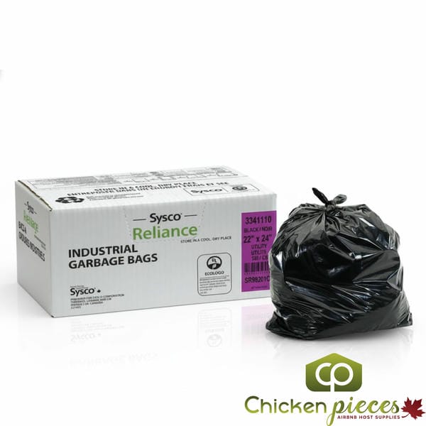 Manufactured in Canada under strict quality controls, Sysco Reliance Garbage Bags combine strength, resilience, and reliability to handle daily waste without tearing or leaking. The sleek black design conceals contents, promoting a tidy, discreet appearance in any environment.