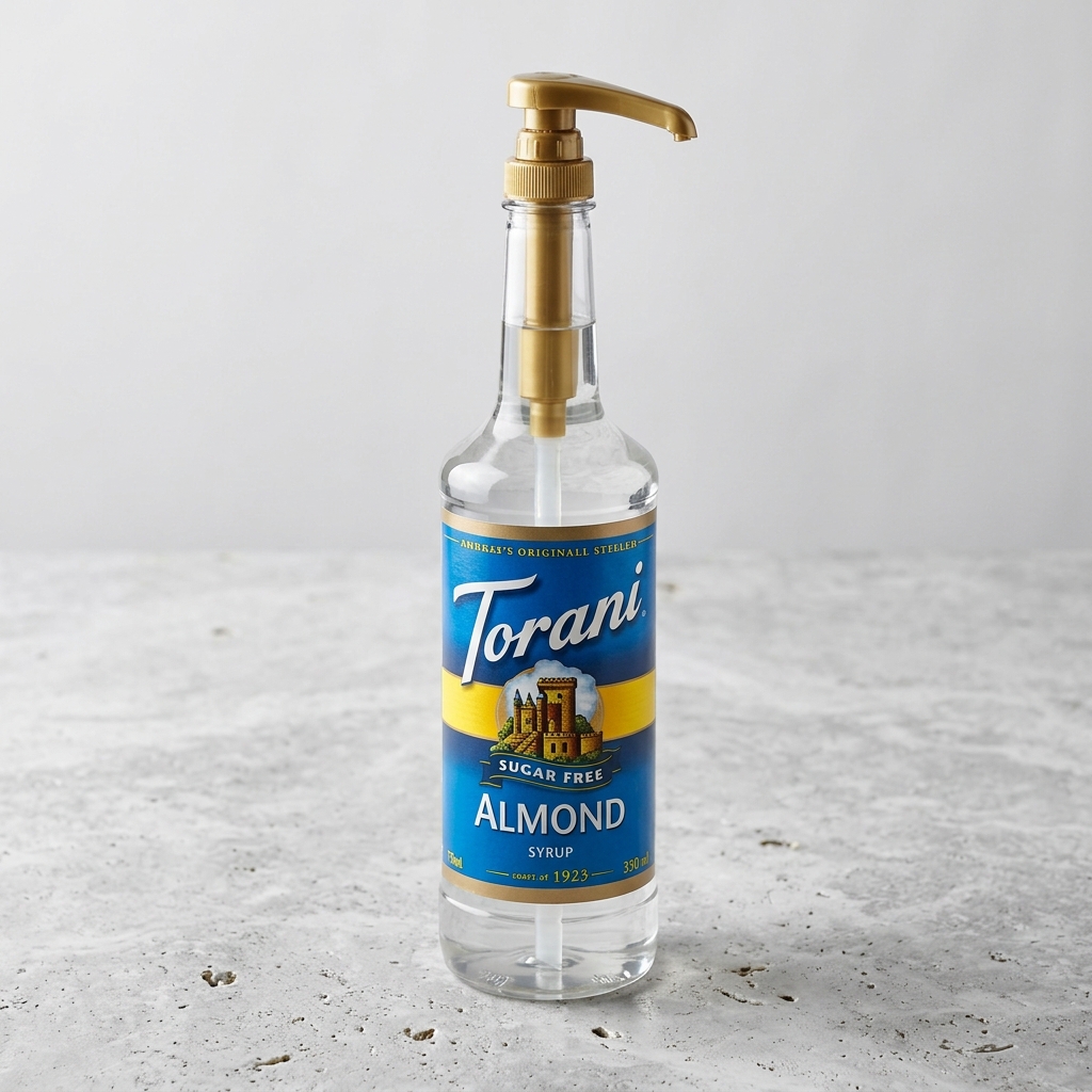 Torani Sugar-Free Almond Flavoring Syrup — 750 mL Plastic (PET) Bottle with Bonus Pump