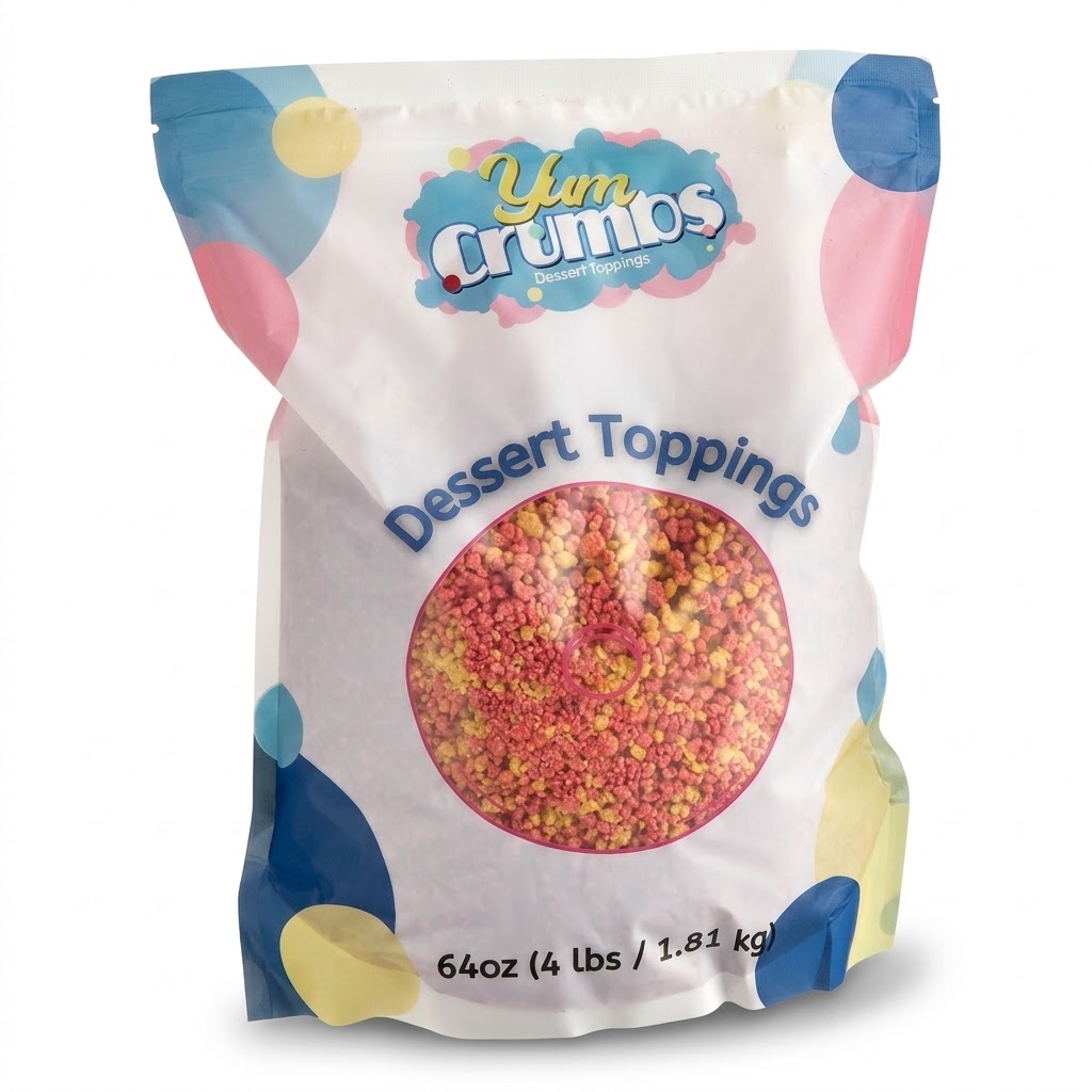 What are the storage and shelf-life benefits? Unlike fresh fruit toppings or homemade crumbles that can become soggy or spoil, Yum Crumbs are shelf-stable, requiring no refrigeration. The resealable 4 lb. bag keeps moisture out, ensuring the product remains crunchy and vibrant for months.
